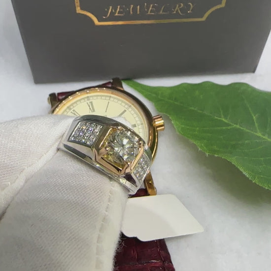 Introducing our stunning Natural Diamond Men's Ring, crafted with elegance in mind. Made from two-tone 18k gold and weighing a substantial 9.5 grams, this ring exudes luxury and sophistication. Adorned with a total diamond weight of 2.26 carats, featuring SI1 clarity and M color, each diamond sparkles with unparalleled brilliance, making it a timeless statement piece for the modern gentleman.